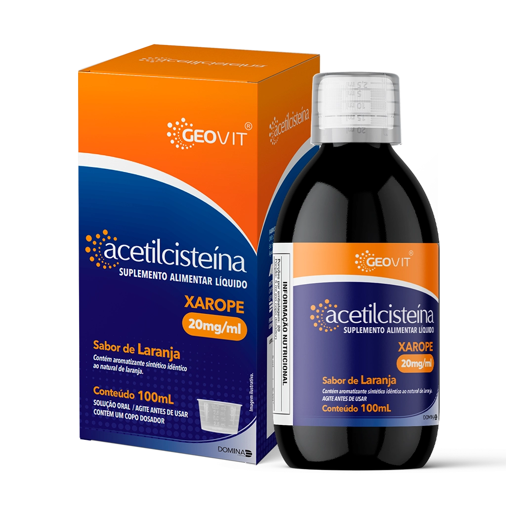 INGREDIENTES: Acetilcisteína, água, espessante carboximetilcelulose sódica, estabilizante sorbitol, regulador de acidez bicarbonato de sódio, conservantes sorbato de potássio e benzoato de sódio, sequestrante EDTA cálcio dissódico, edulcorante sucralose e aroma idêntico ao natural de laranja. NÃO CONTÉM GLÚTEN.